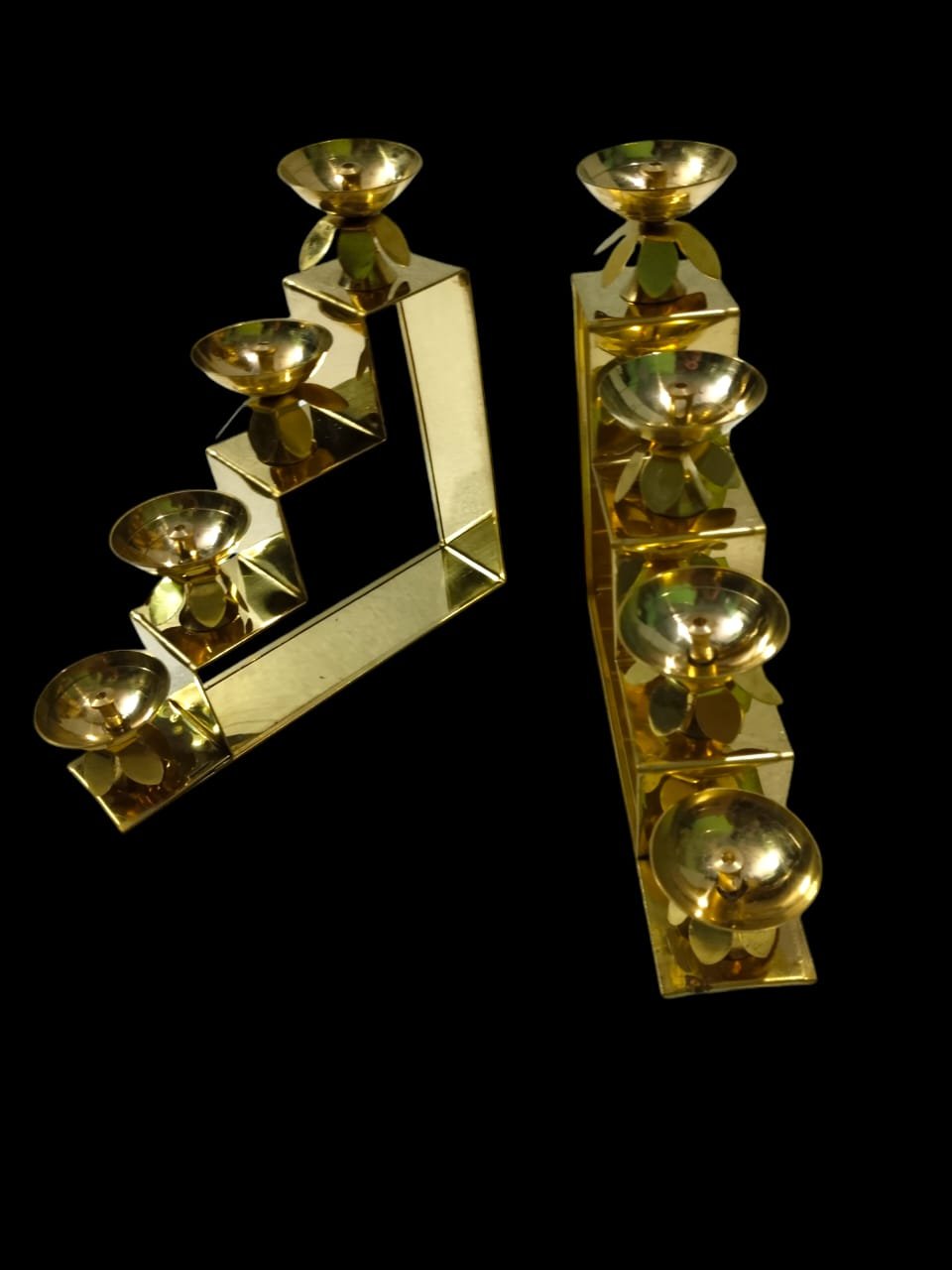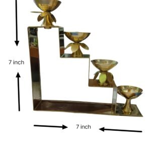 Enhance your pooja setup and home décor with this Pack of 2 Premium Brass 4-Step Staircase Diya Stands, beautifully crafted for traditional and modern spaces. Each stand features 4 brass diya cups arranged in an elegant staircase pattern, giving a stylish and elevated look to your décor.