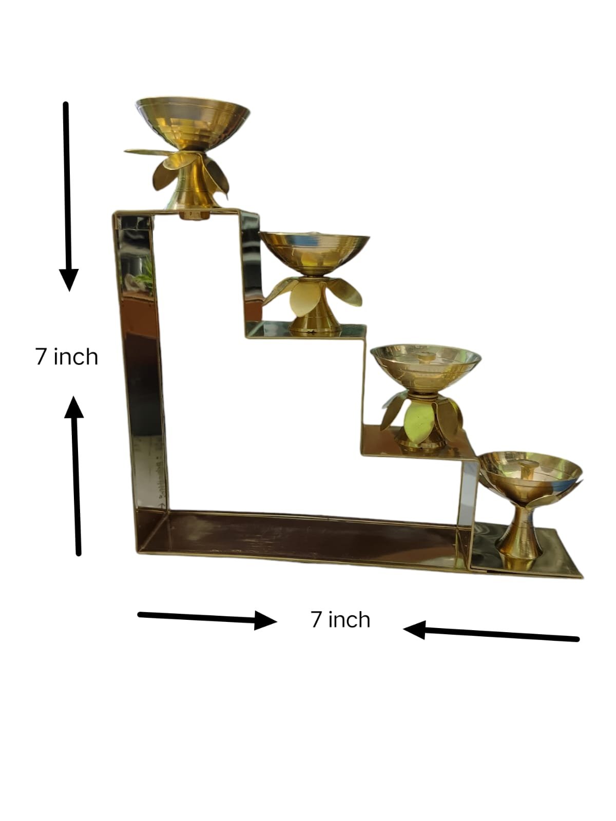 Its compact size—7 inch Height, 7 inch Length, 1.5 inch Width—makes it ideal for shelves, table tops, pooja ghars, rangoli décor, and festival arrangements.