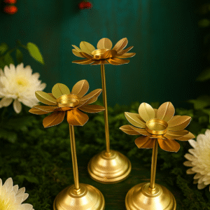 This decorative diya holder set creates a warm, peaceful ambiance when lit and complements both traditional and contemporary interiors. A perfect choice for daily pooja or special occasions.