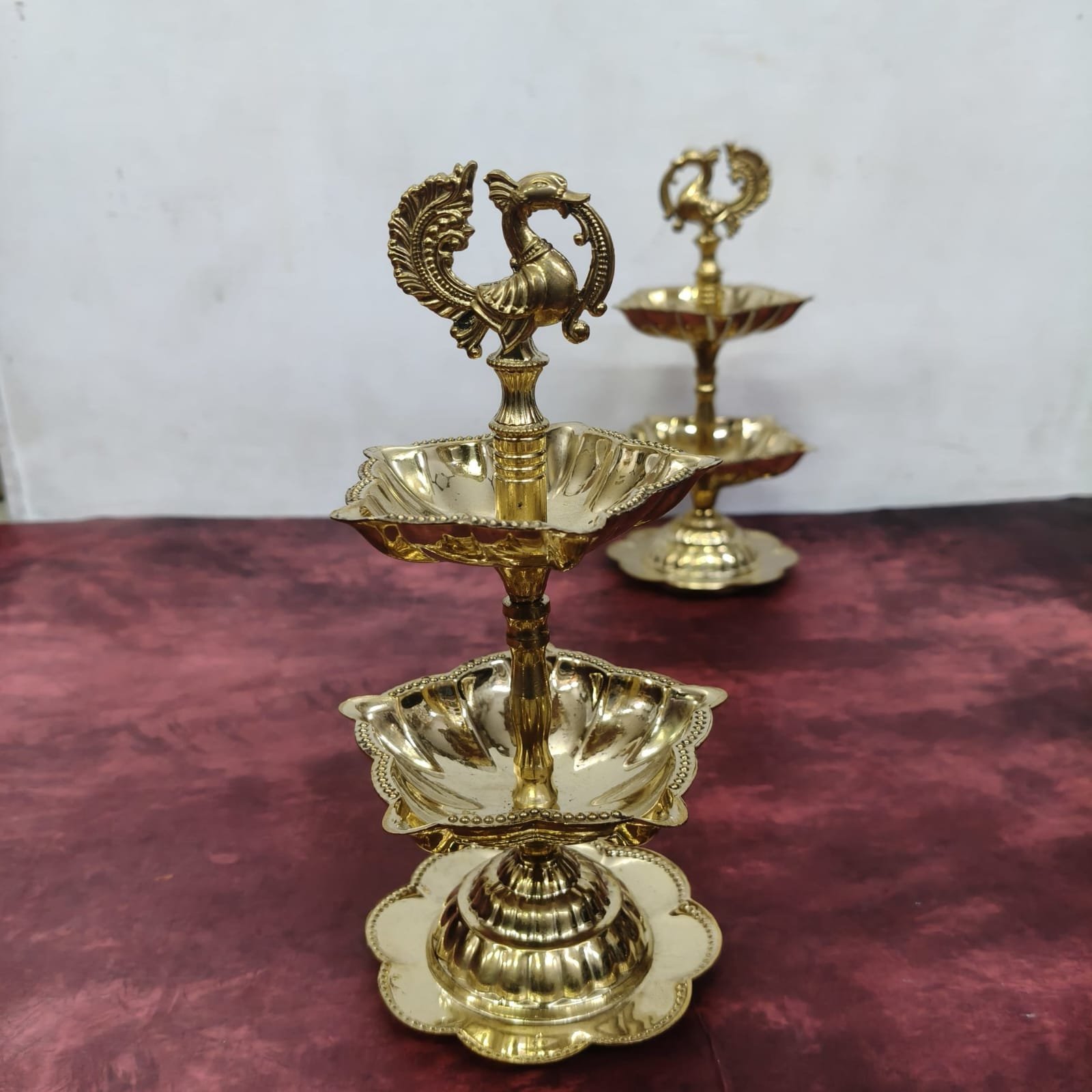 Pure brass 2 step panchmukhi peacock diya pack of 2