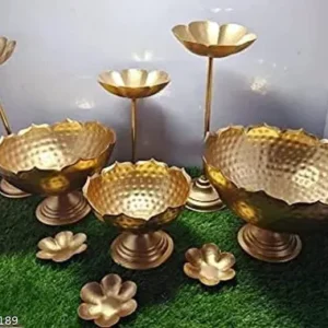 Premium golden metal urli and flower stand set, perfect for Diwali, weddings, pooja, and luxury home décor. Ideal for floating flowers and candles.